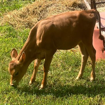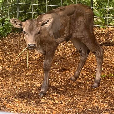 Dolly is a black angus heifer calf that recently joined our family ( born 7/09/2024) Dolly had a rough start, and spent the first week of her life at the New Bolton Center, for large animals. Dolly suffered from a rare condition called "Weak Calf Syndrome". With the wonderful care she received at New Bolton, she is on the road to a full recovery, and a spoiled life :)