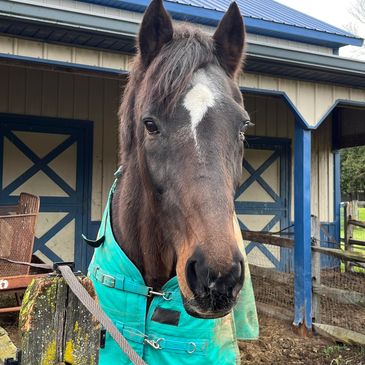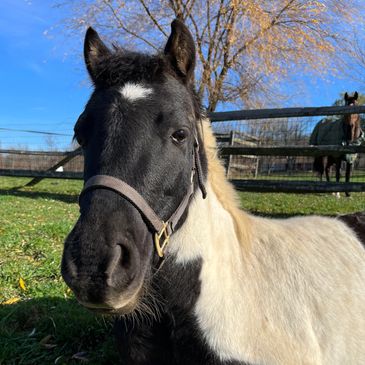 Parton is a Jersey calf that we borrowed from our friends at Bailys Dairy, in West Chester. We borrowed Parton to keep Dolly company, during her recovery. Like horses, cows are herd animals and don't do well alone. When Dolly came home from the hospital, she became very sad and didn't want to eat. We introduced Parton to Dolly and they instantly bonded and are the best of friends. Welcome to the farm, Parton. ( Parton officially became a permanent member of Happy Horses Farm on 12/20/2024)